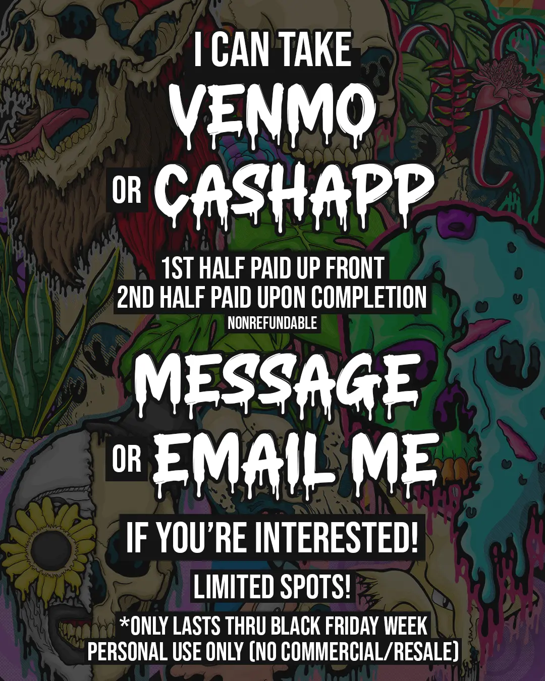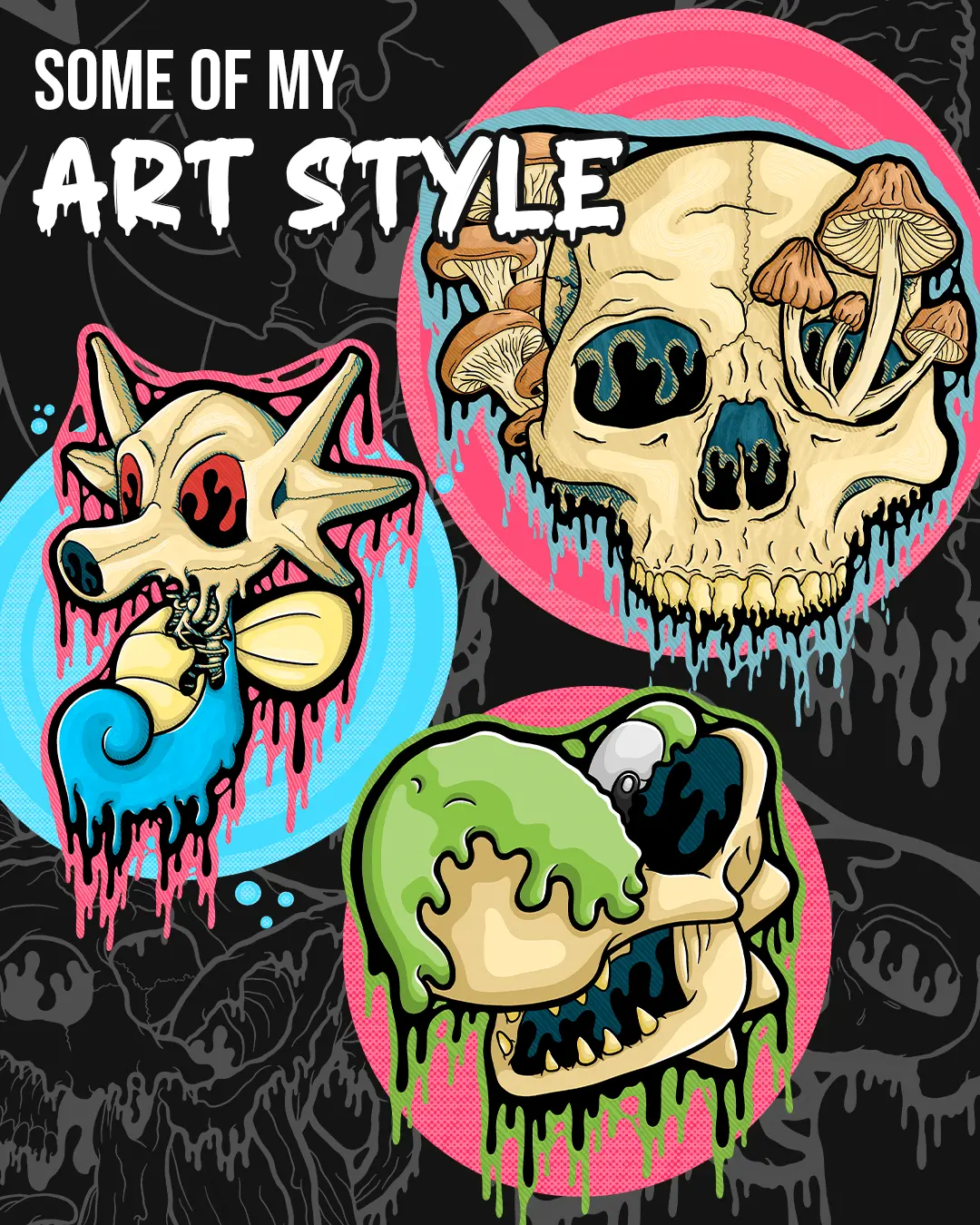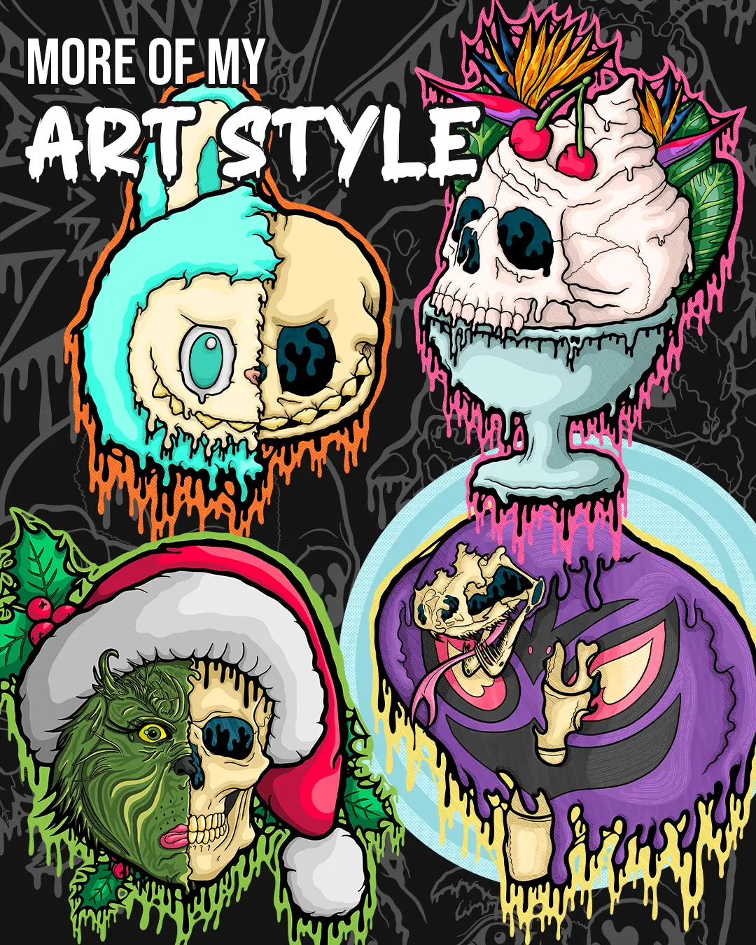 Black Friday week is here, and Iโm opening limited drippy skull + skeleton commissions for a short time only, Nov 25 through Dec 7. If youโve ever wanted your favorite character, OC, or even yourself turned into one of my signature melt-style skull illustrations, nowโs the moment!
