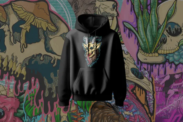Stay cozy in gothic fashion with the Drippy Baphomet Skull 2 Hoodie, featuring creepy drippy skull art inspired by occult symbolism. Great for horror collectors and alternative fashion fans.
