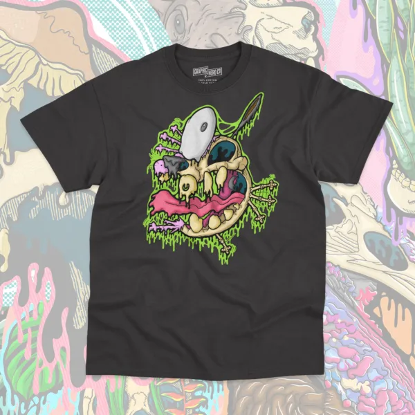 A vibrant, creepy-cute twist on a classic! My Drippy Courage the Cowardly Dog Skeleton is an original hand-drawn Illymakes illustration dripping in neon slime, bones, and chaotic cartoon energy. Available as tees, hoodies, stickers, prints, and all-over print shirts.
