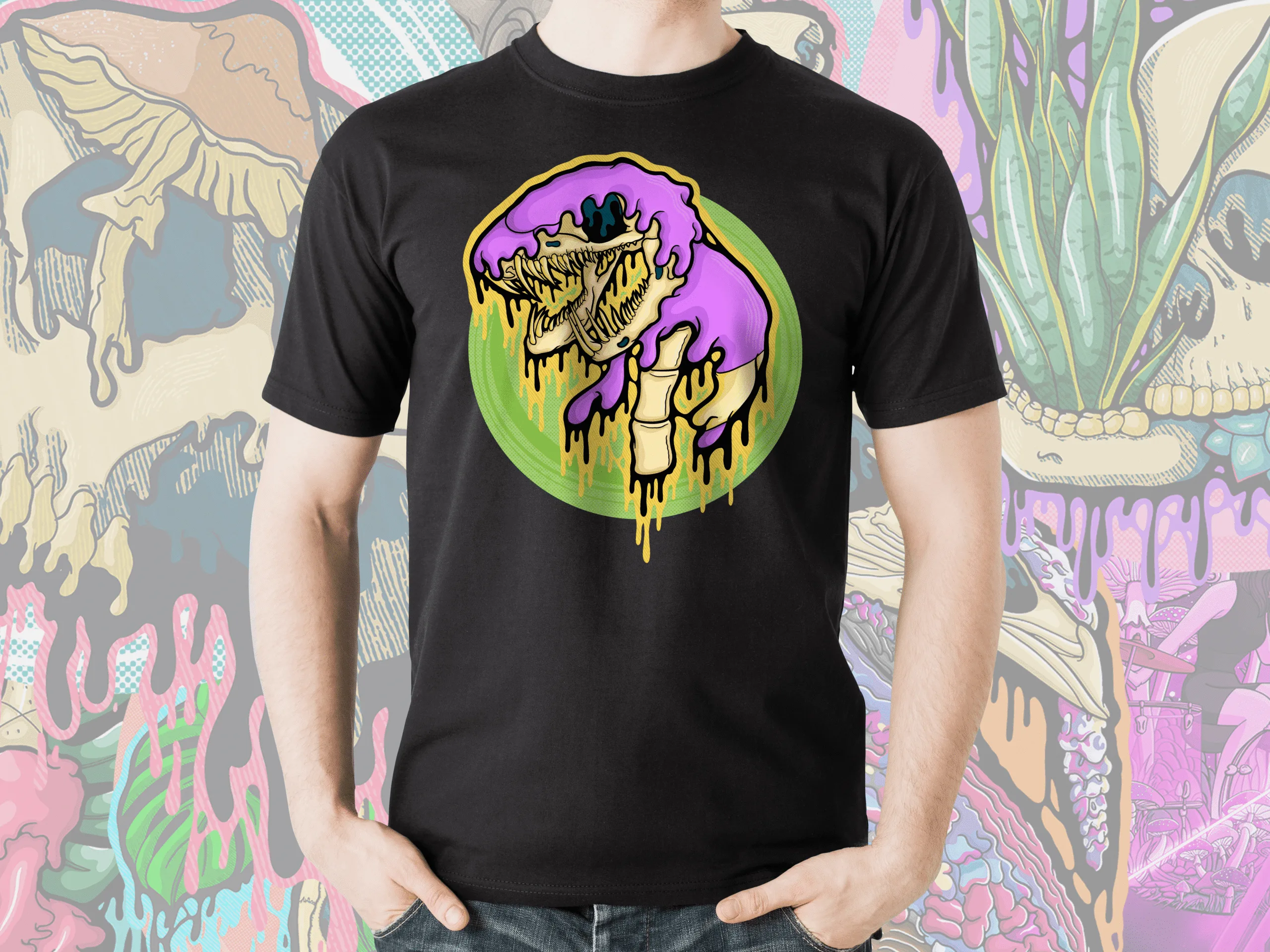 Add spooky Pokémon horror to your wardrobe with this Drippy Ekans Skull t-shirt! This creepy cute horror-inspired design merges Ekans’ reptilian form with a macabre skeletal twist, complete with melting horror drips and eerie details.