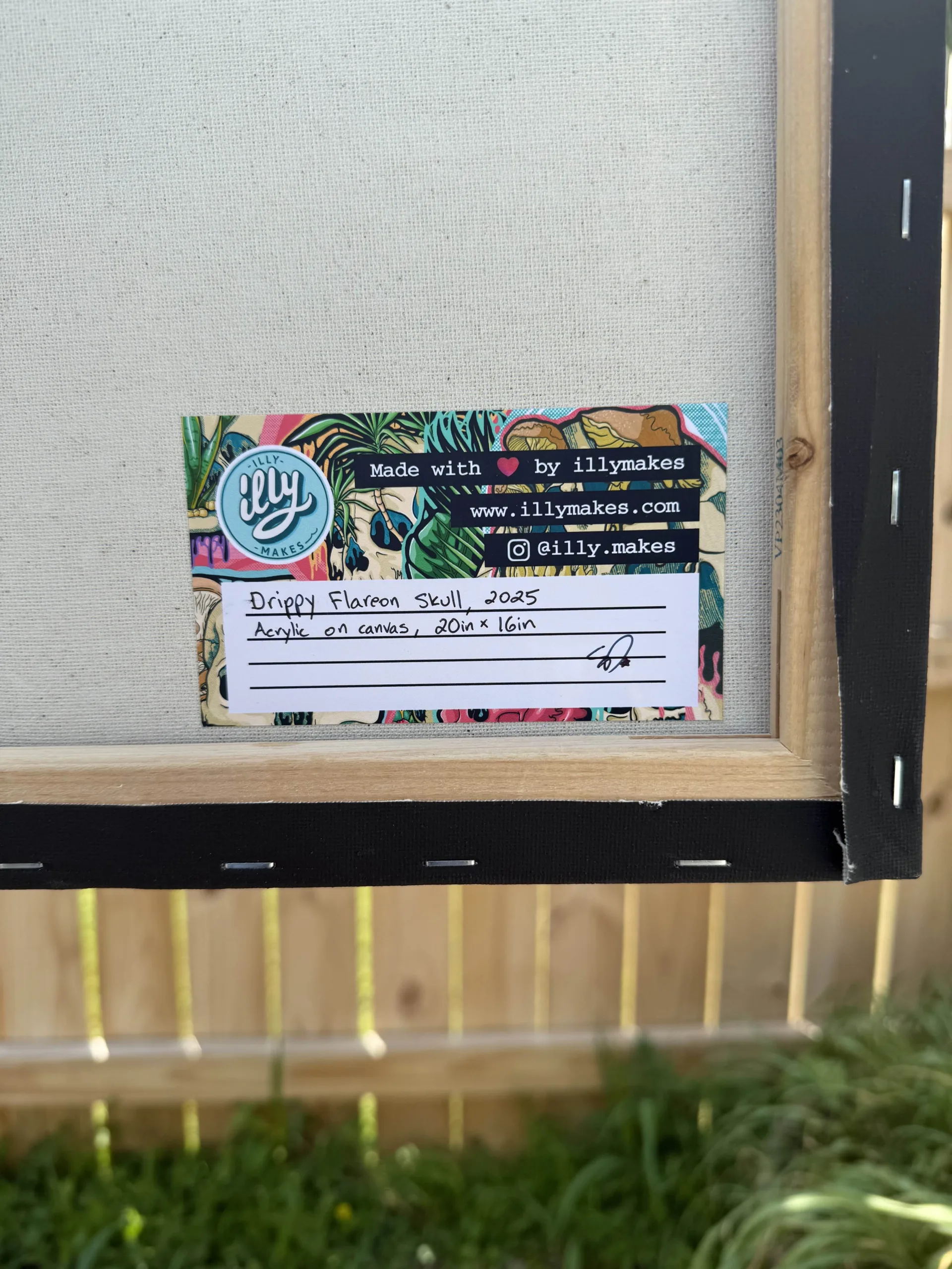 This painting is more than fan art—it’s a unique, original piece from my drippy skull series. Hand-painted in acrylic on canvas, it captures Flareon’s fiery spirit through a gothic surrealist lens. Unlike prints or reproductions, this is the only version that exists—1 of 1—hand-labeled and autographed on the back for authenticity.
