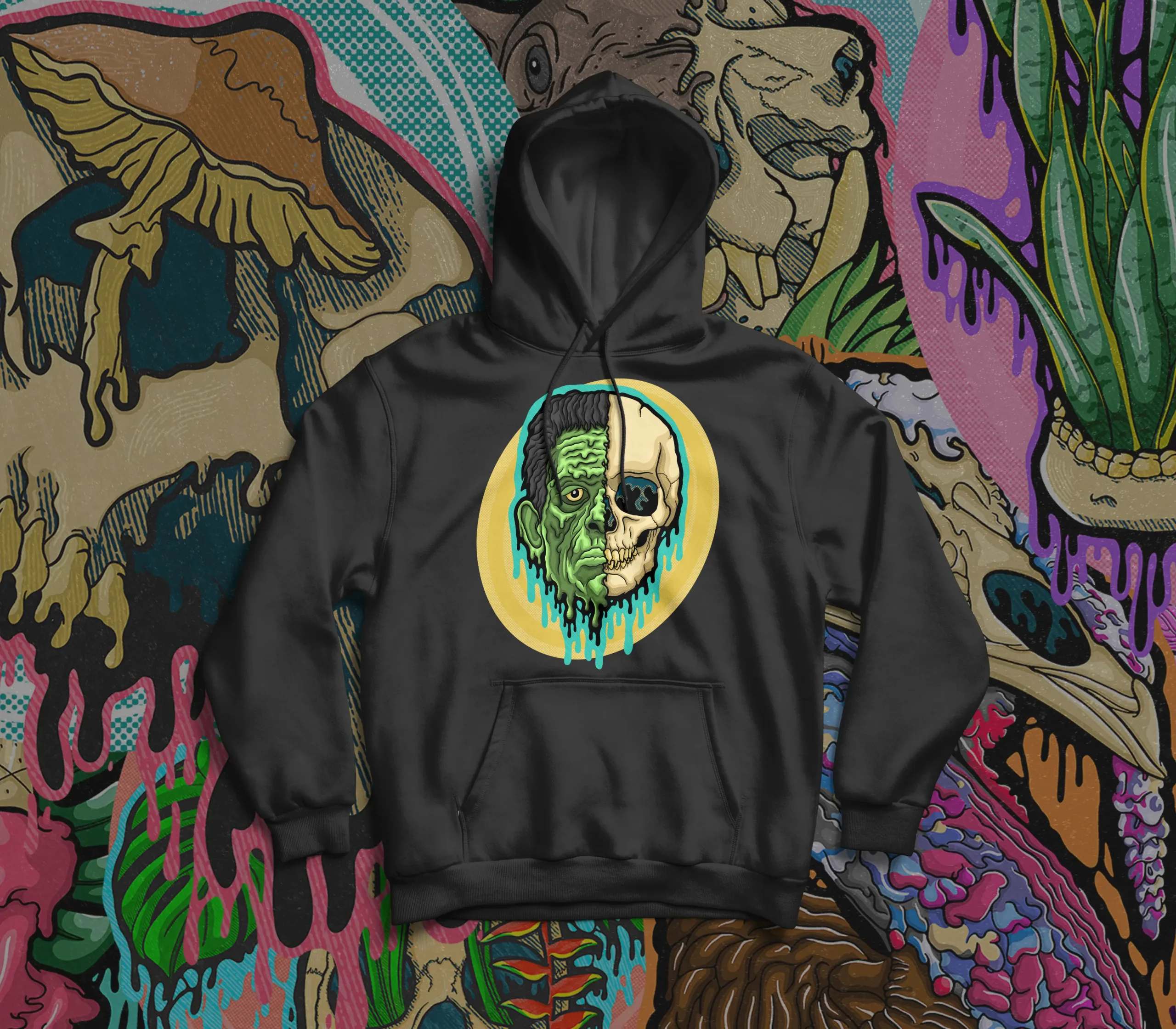 Show off your love for classic monsters with the Drippy Frankenstein Skull Hoodie, a gothic horror sweatshirt featuring creepy drippy skull art. Great for collectors, horror fans, and alternative fashion lovers.