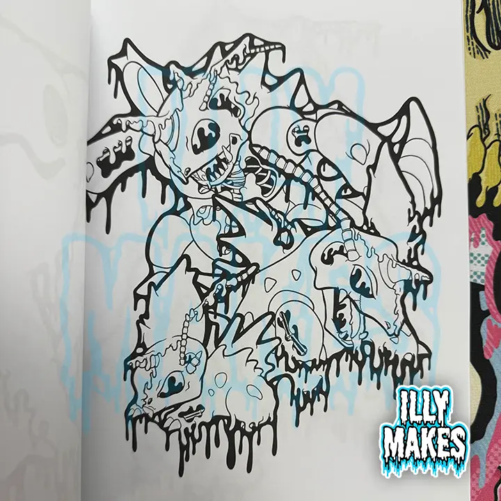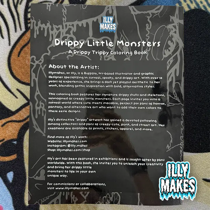 Featuring 32 pages of original skull and skeleton designs, this spooky-cute collection brings your favorite anime-style creatures to life in Illymakes’ signature drippy art style. Each page blends gothic, horror, and fantasy elements with a playful twist, perfect for fans of anime, alternative art, and all things weird and wonderful.