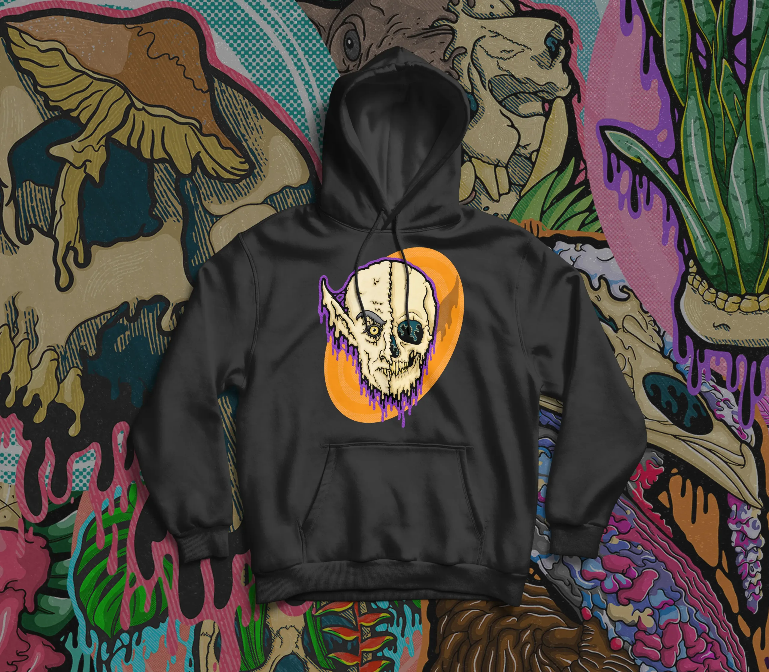 Show your love for classic horror with the Drippy Nosferatu Skull Hoodie, a gothic sweatshirt featuring creepy drippy skull art. Great for vampire fans, horror collectors, and alternative streetwear fashion.
